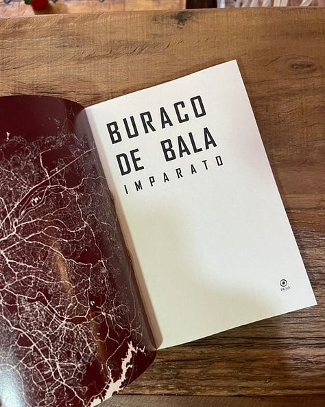 Semana que vem, no dia 19/02 (quinta-feira), às 19h30, meu amigo e irmão Bruno Imparato lançará seu primeiro romance, BURACO DE BALA. O lançamento será na LIVRARIA PATUSCADA (Rua Luís Murat, 40).